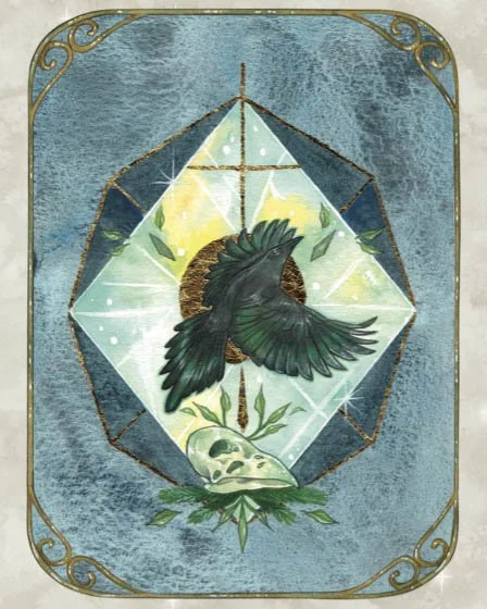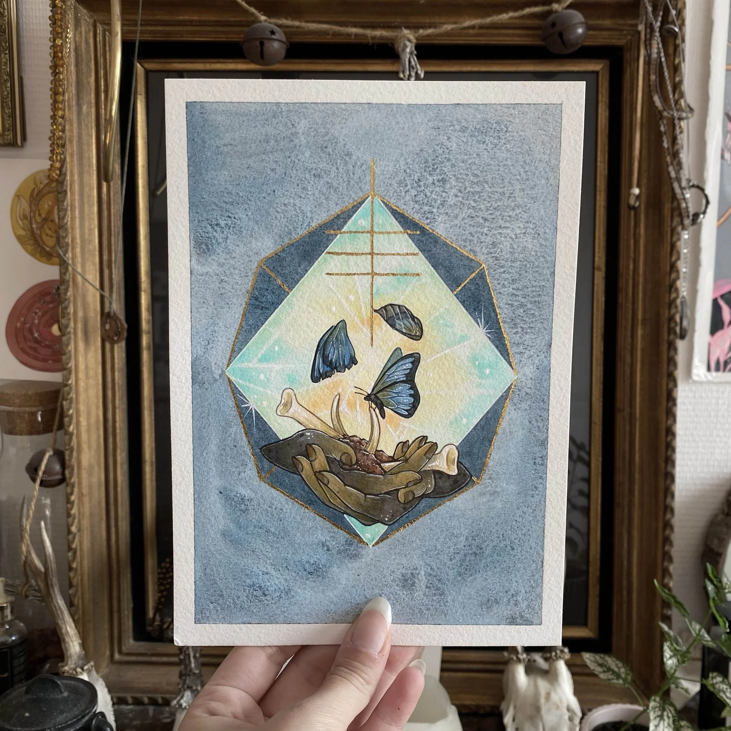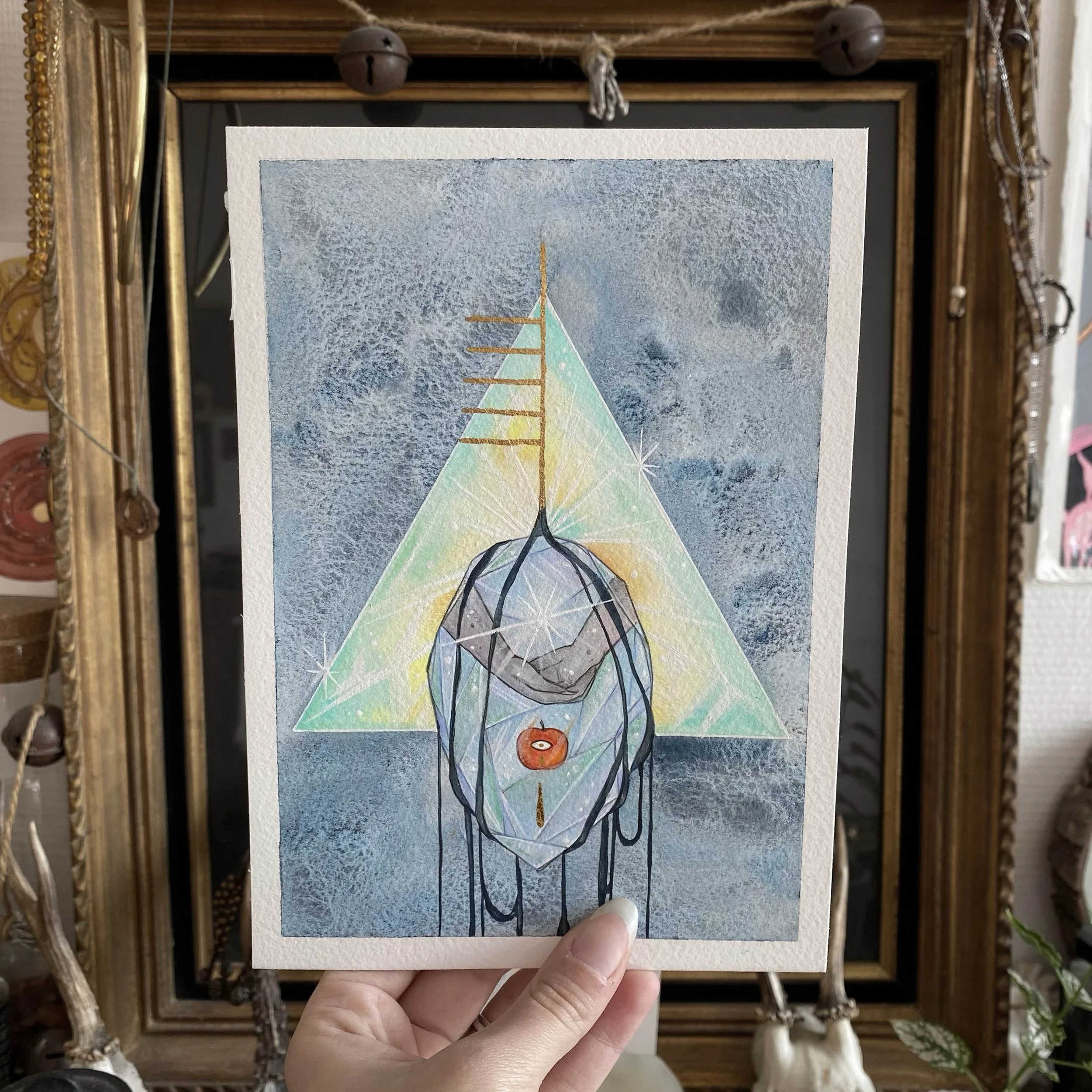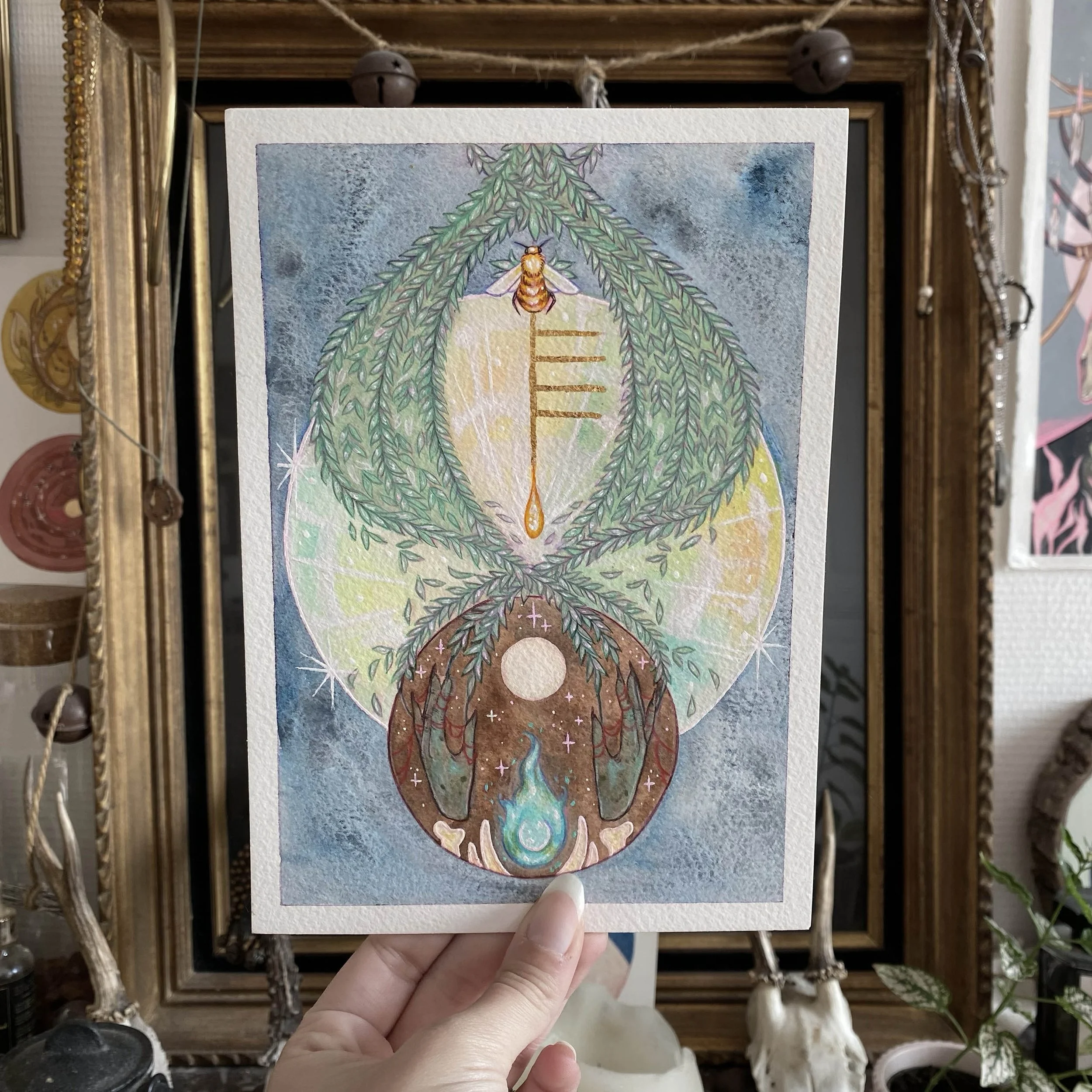 Illustration originale de l’oracle des Âmes Stellaires, format A5 réalisée sur papier aquarelle Moulin du Roy grain fin (100% coton) 300g.